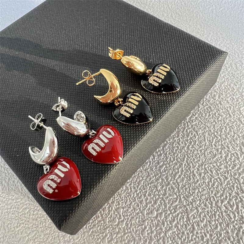 Unit price perMiu Miu Heart Enamel Pendant Metal Earrings