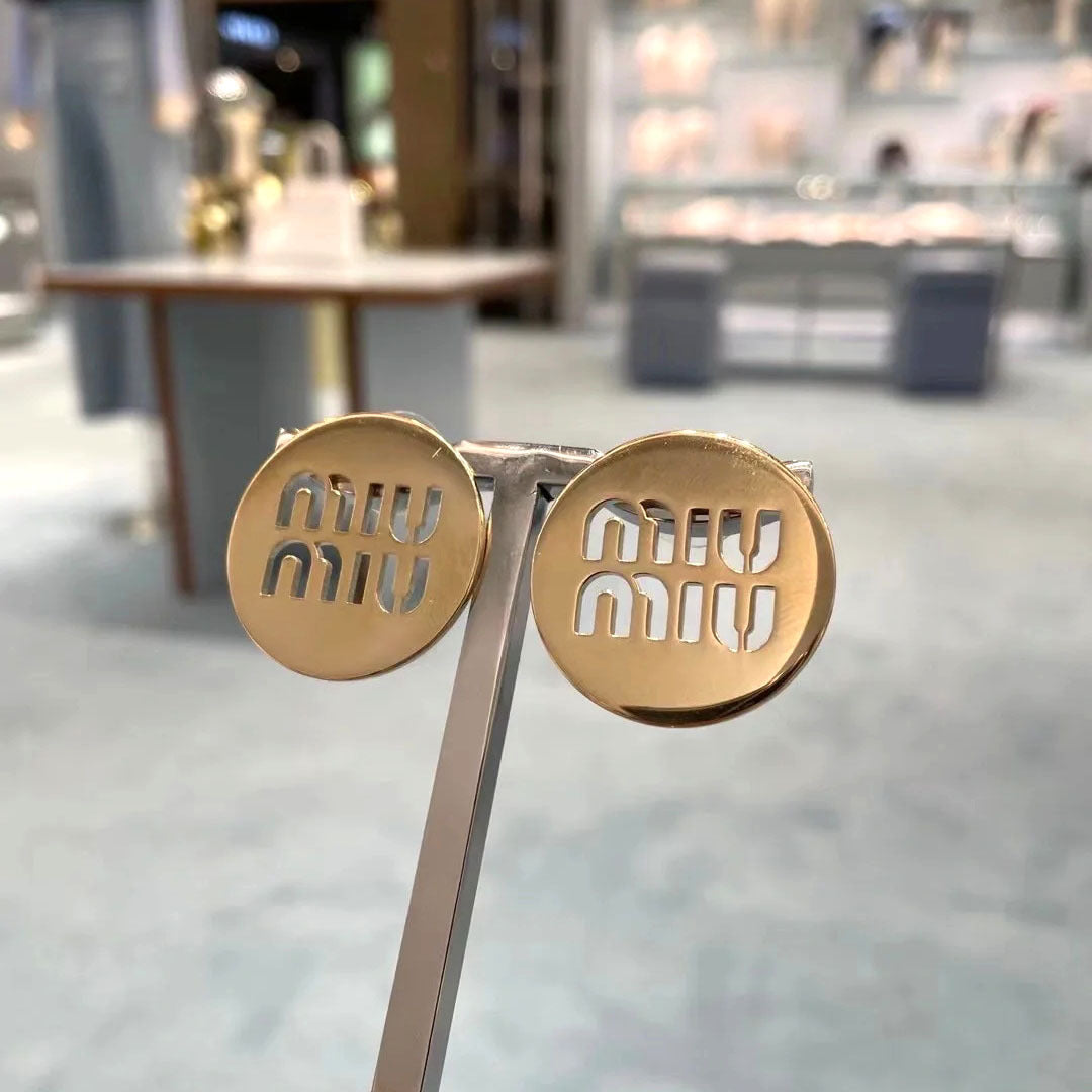 Miu Miu Simple Hollow Round Metal Stud Earrings