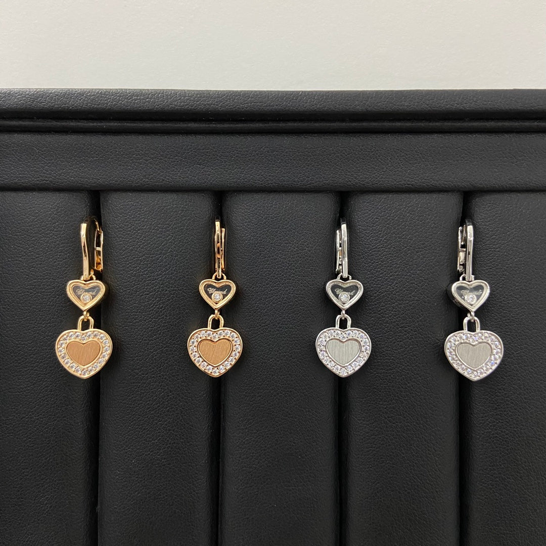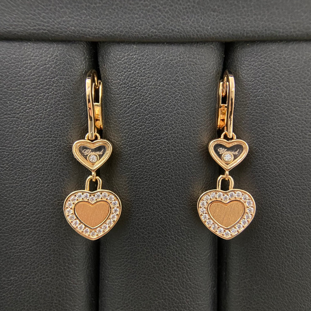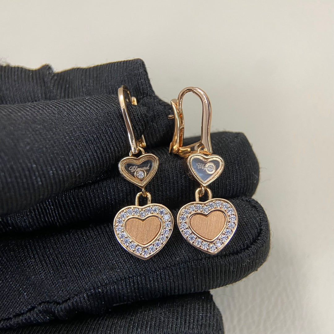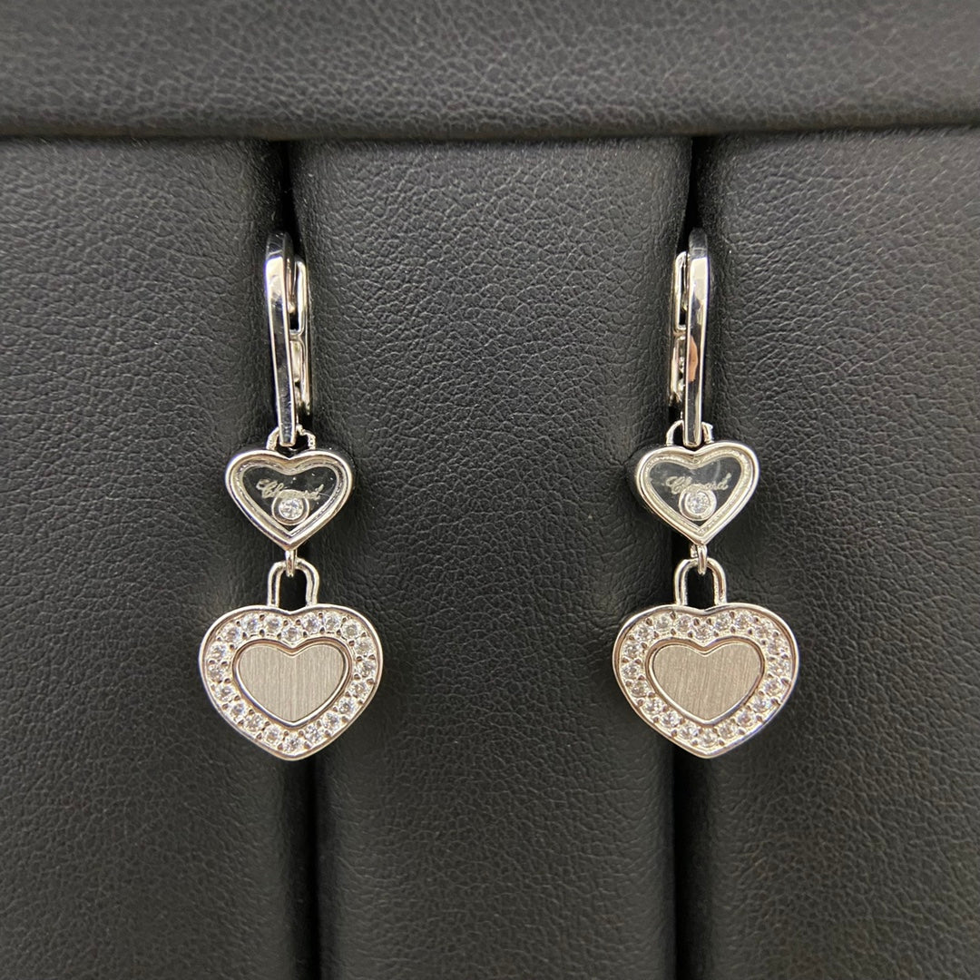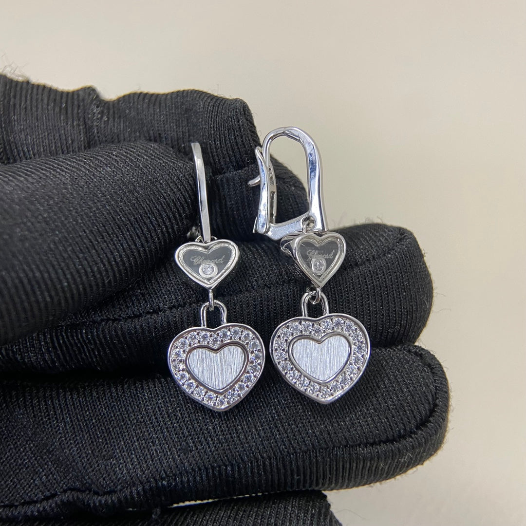 Chopard Frosted Diamond Heart Pendant Earrings