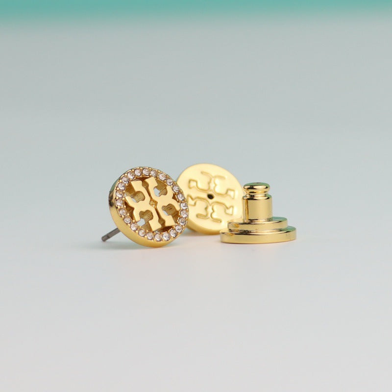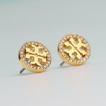 Tory Burch Diamond Round Logo Earrings