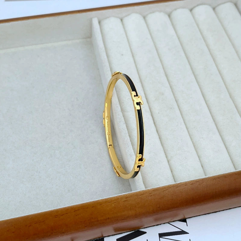 Classic Black and Gold Bangle: A timeless combination for sophisticated contrast.