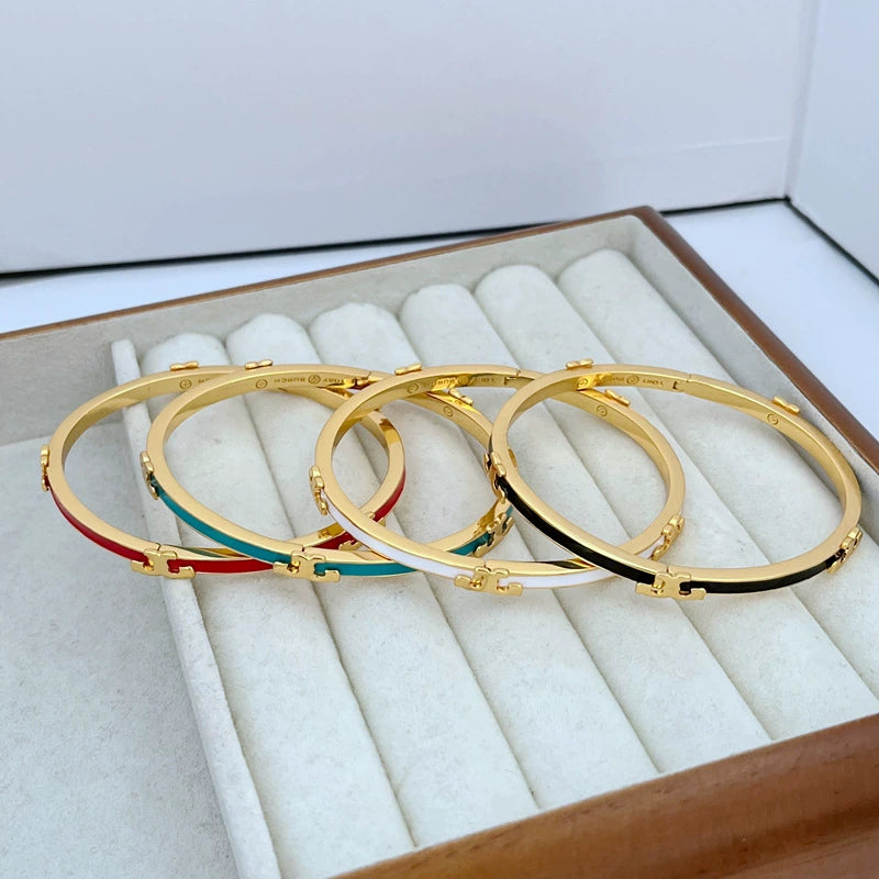 Tory Burch Enamel Open Metal Bracelet