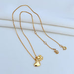 Tory Burch Heart Logo Adjustable Necklace is constructed from a slender, polished gold-tone link chain that drapes gracefully. Its choker length is complemented by an adjustable extender chain finished with a small jump ring, allowing for a personalized and comfortable fit. The design highlights two small, highly polished hanging charms: