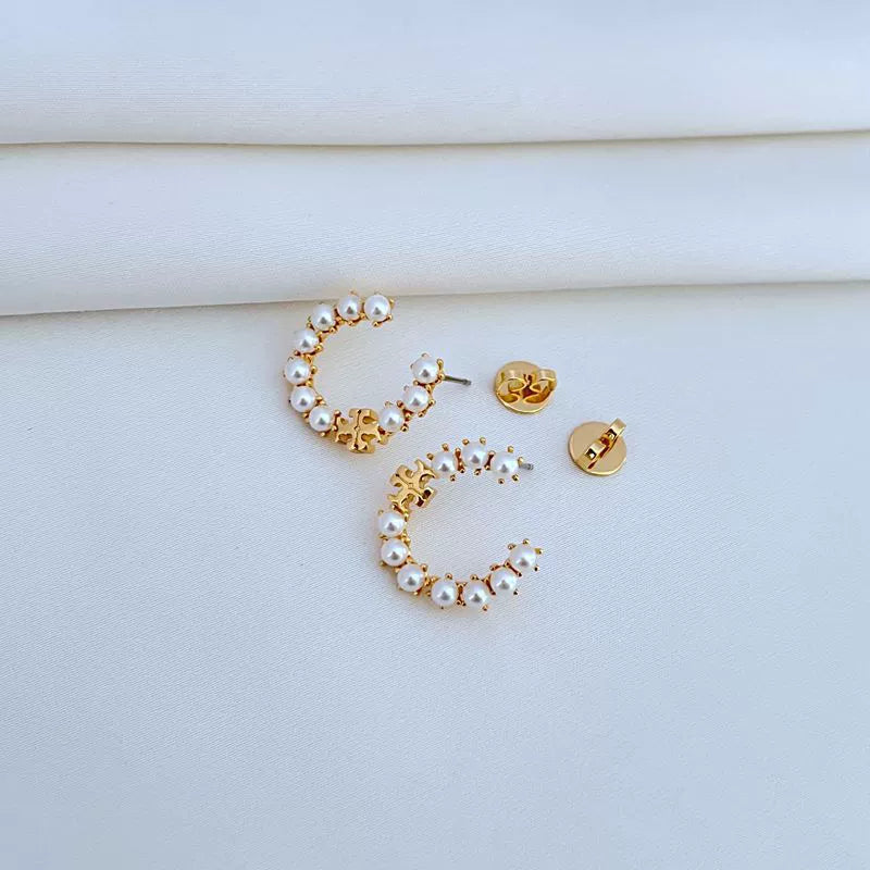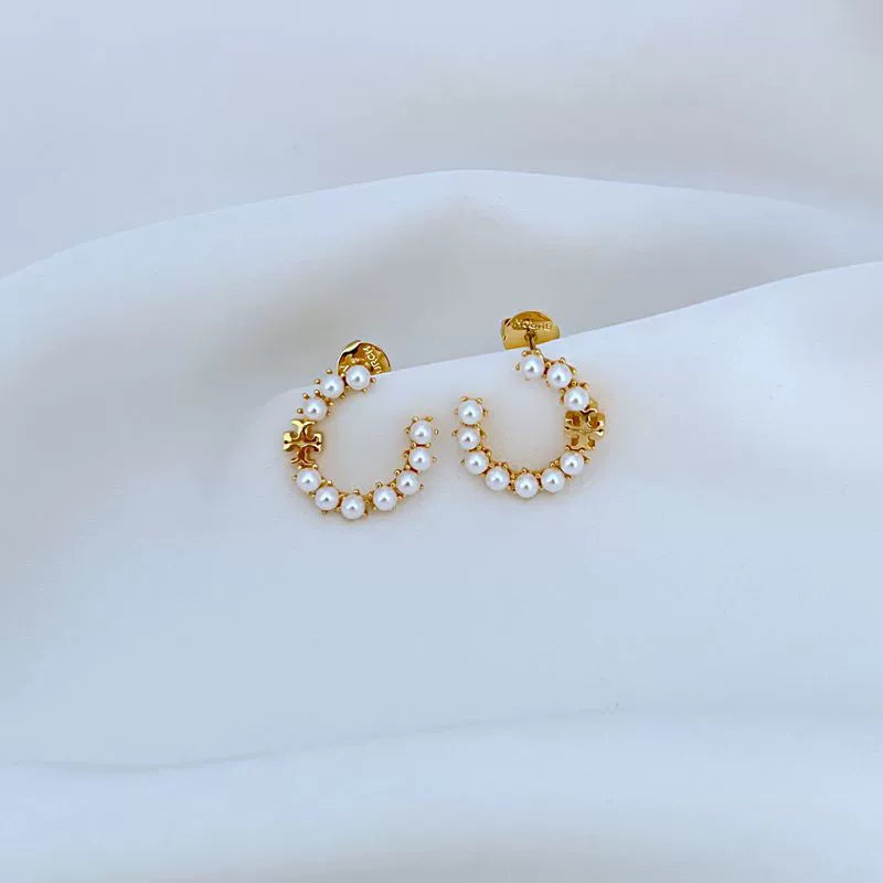 Unit price perTory Burch Logo Pearl Hoop Earrings