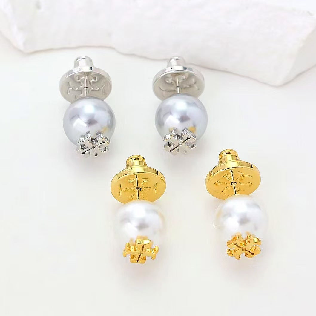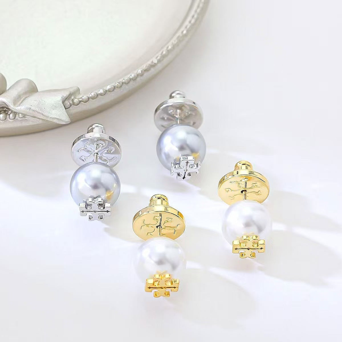 Tory Burch Logo Pearl Stud Earrings This classic combination of signature style and feminine grace offers understated luxury. Perfect for effortlessly transitioning from day to night, they provide a polished, instantly recognizable finish to any outfit.