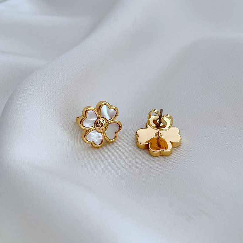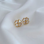 Tory Burch Mother-of-Pearl Four-Leaf Clover Metal Stud Earrings
