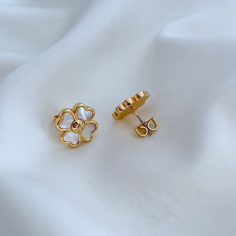 Unit price perTory Burch Mother-of-Pearl Four-Leaf Clover Metal Stud Earrings