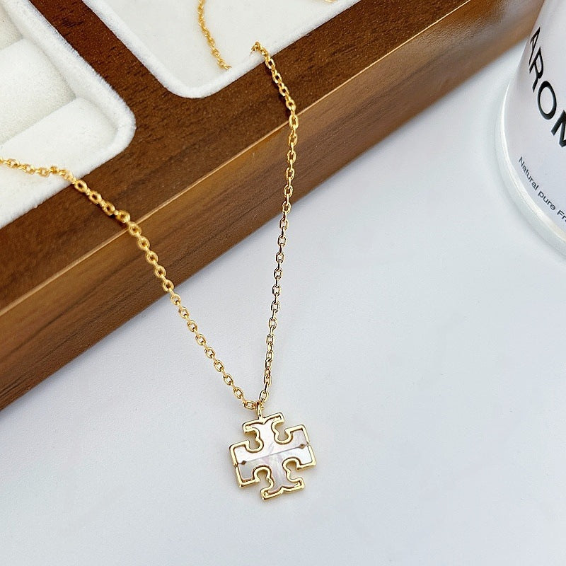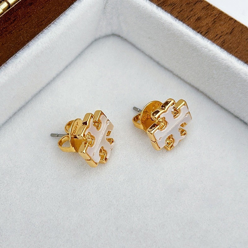 Unit price perTory Burch Natural Mother-of-Pearl Logo Metal Stud Earrings & Necklace