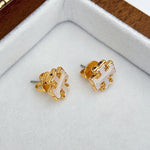 Tory Burch Natural Mother-of-Pearl Logo Metal Stud Earrings & Necklace